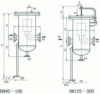 (2)SLFQ型气体过滤器 ■产品概述 SF0型气体过滤器是一种新型、高效气体除尘设备,广泛用于石油、天然气工业部门一般含尘量的气体主管线和旁通管。亦是城市天然气、煤制气输配系统安全、可靠运行不可缺少的气体净化设备。具有结构先进、除尘效率高、操作维护方便等优点。 ■主要技术参数 公称直径:DN40-DN300 工作压力:1.0—5.4MPa 工作温度:≤80℃ 处理量:≤12000m3/h(工作状态下) ■选用要点 ◆选用本系列产品必须注明介质,操作压力及温度。 ◆SLF0型气体过滤器主要用于干气过滤,如介质含水较高时,应在设备前安装我公司生产的预分离器,以保证过滤器效果。 ■产品规格