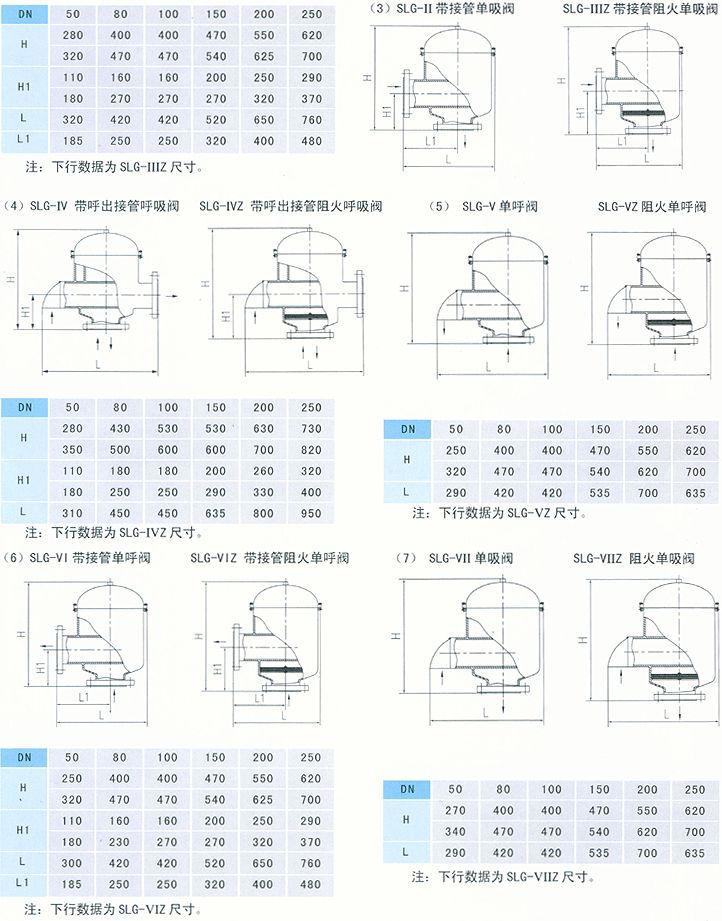 (1)SLG-I带双接呼吸阀 SLG-IZ带双接管阻火呼吸阀 (2)SLG-II带吸入接管呼吸阀 SLG-IIZ带吸入接管阻火呼吸阀